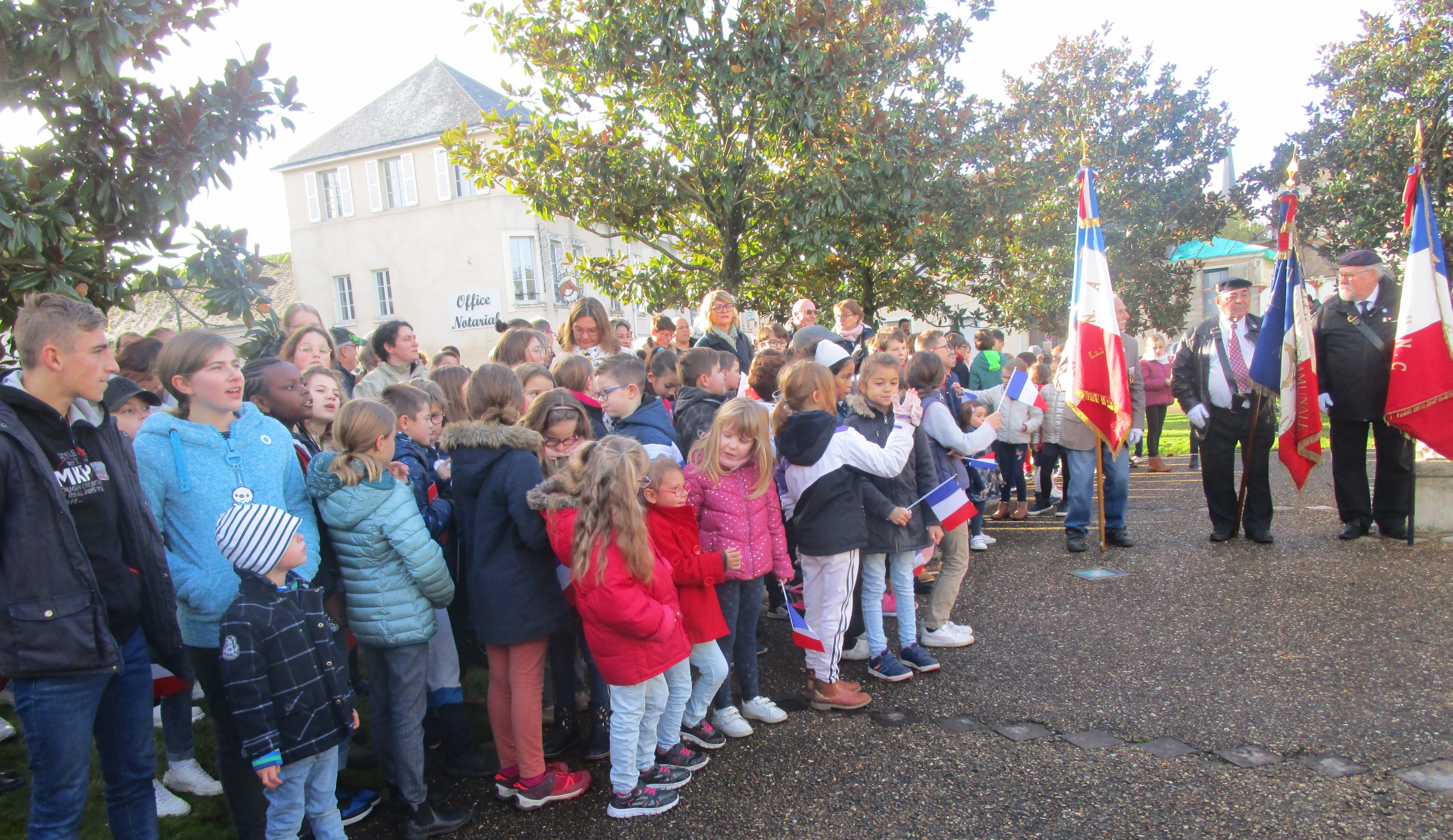 A Montoire, la commémoration du 11 novembre a pris, cette année, un relief très spécial et particulièrement émouvant, en raison de la présence de nombreux enfants accompagnés.de leurs enseignantes et de leurs parents. A un moment où nous sommes tous conscients d’une perte de repères et des difficultés à assumer le « vivre ensemble », un tel instant constitue un gage d’espoir.