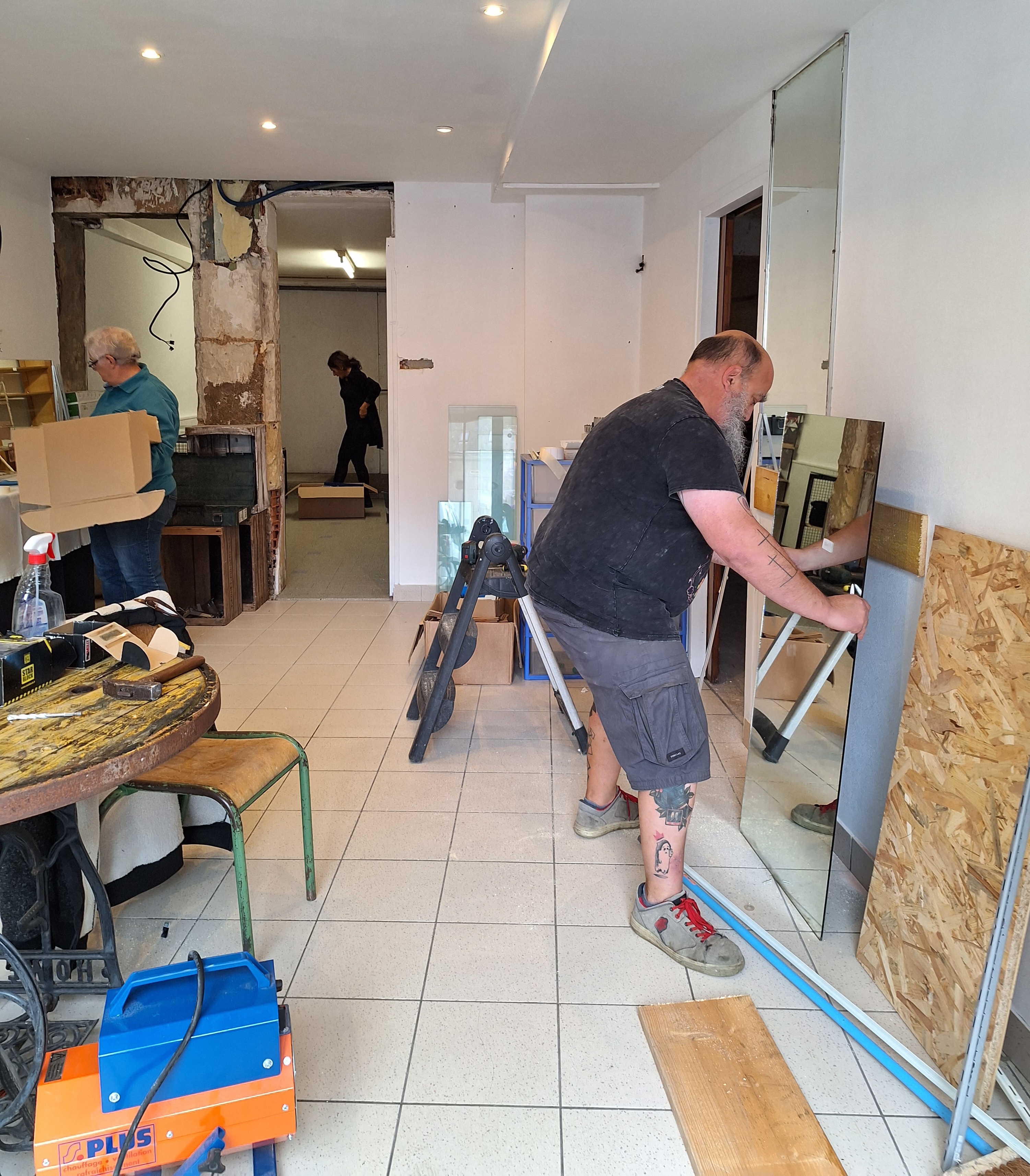 Une petite visite avant l’ouverture officielle de la Boutique : Roland Drover est en plein travail de finitions du lieu, et c’est l’installation des exposants qui mettent en place l’espace qui leur est dédié.