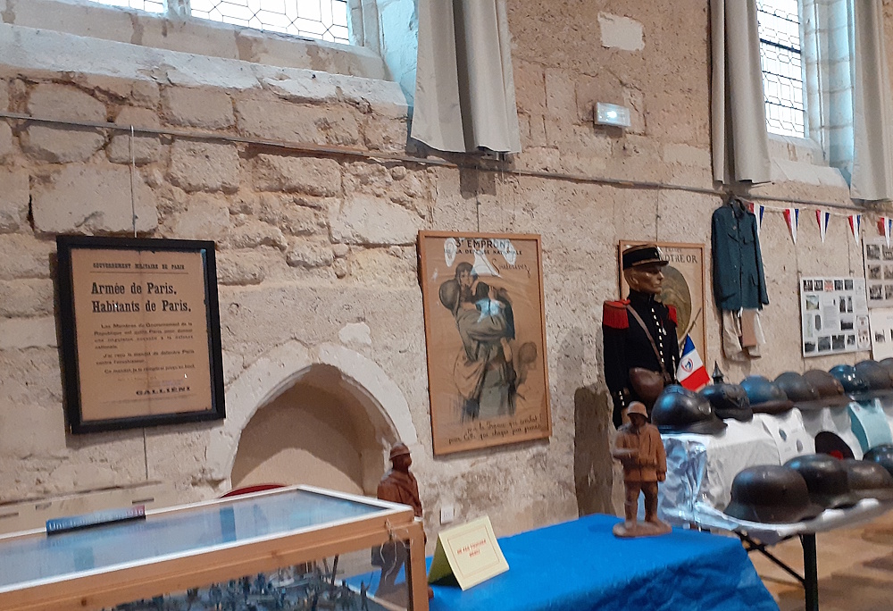 Afin de participer à la transmission du Devoir de Mémoire, l’association « Ceux de Verdun » en partenariat avec « Images et Sons en Vendômois » organise du 8 au 11 novembre, une exposition à la Chapelle Saint-Jacques sur le thème « Vendôme, ville de l’arrière durant la Grande Guerre ». Aucun passant ne peut manquer l’entrée du lieu devant lequel est stationné l’un des célèbres « Taxis de la Marne », ces taxis parisiens réquisitionnés par le Général Galliéni, Gouverneur militaire de Paris, pour transporter des renforts sur le Front, en septembre 1914. Des membres de l’association revêtus de la tenue « bleu horizon » et coiffés du casque Adrian contribuent à faire revivre cette période de l’Histoire. Dans l’exposition figure une quantité innombrable d’objets : armes, uniformes, casques, décorations, drapeaux, éléments d’équipement …mais aussi objets du quotidien, retrouvés sur les champs de bataille, portemonnaies, portefeuilles, montres, couteaux de poche, rasoirs… que l’on ne peut regarder sans ressentir une profonde émotion tant ils sont porteurs d’un message de souffrance et de courage mêlés. Parmi les pièces exposées figurent également ces vases sculptés dans des obus par les « poilus » lors des longues heures passées dans les tranchées.
